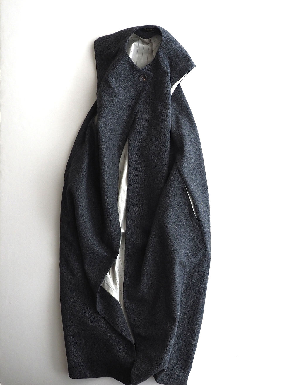 #210-C21 綿麻シャンブレースタンドカラーシャツドレス